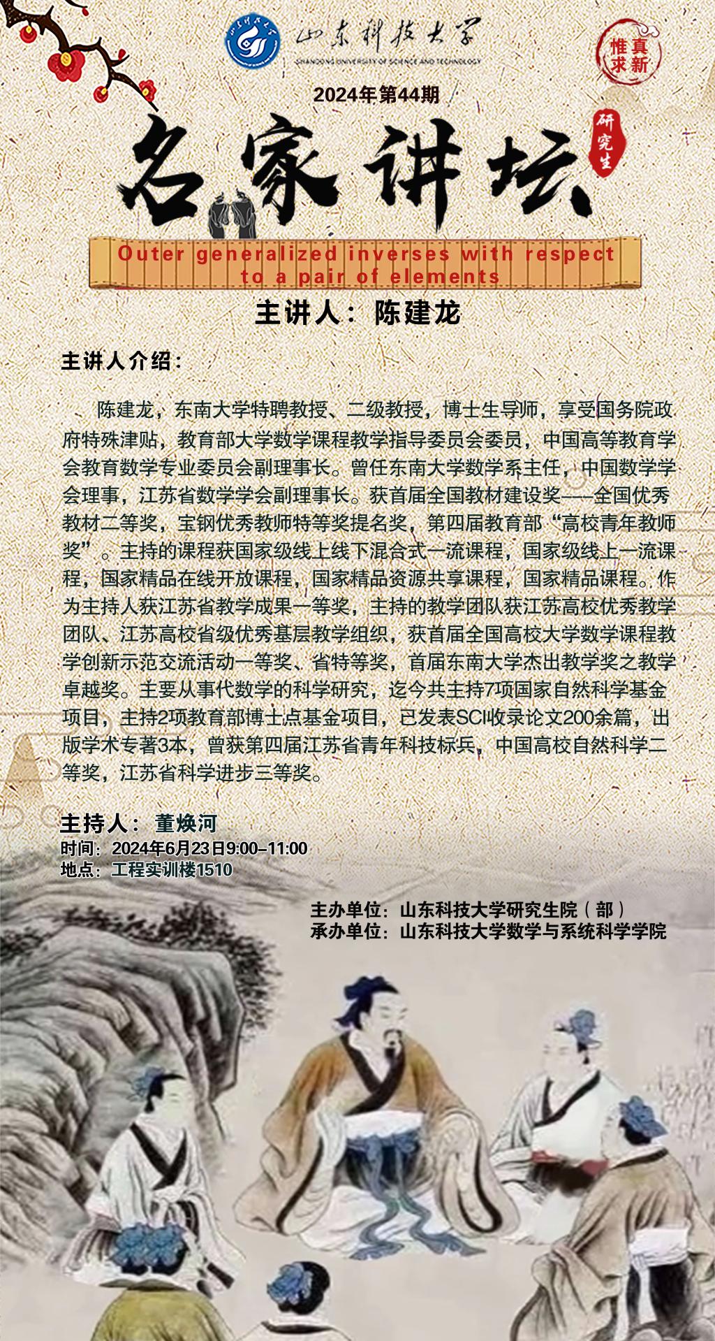 “名家讲坛”2024年第44期:Outer generalized inverses with respect to a pair of elements(总938期)