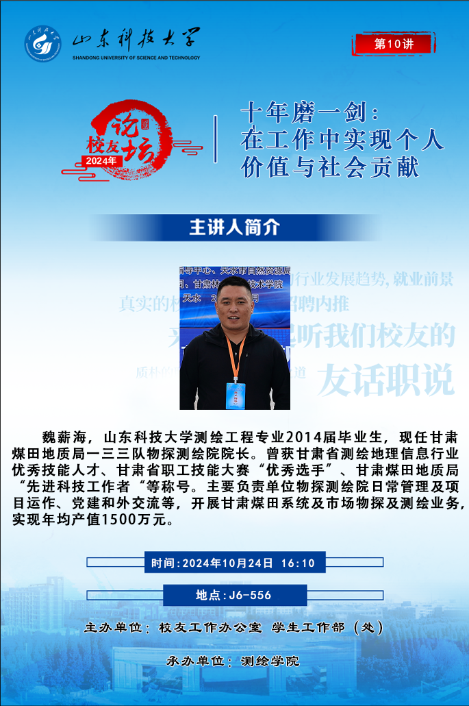 “校友论坛”2024年第10讲:十年磨一剑——在工作中实现个人价值与社会贡献