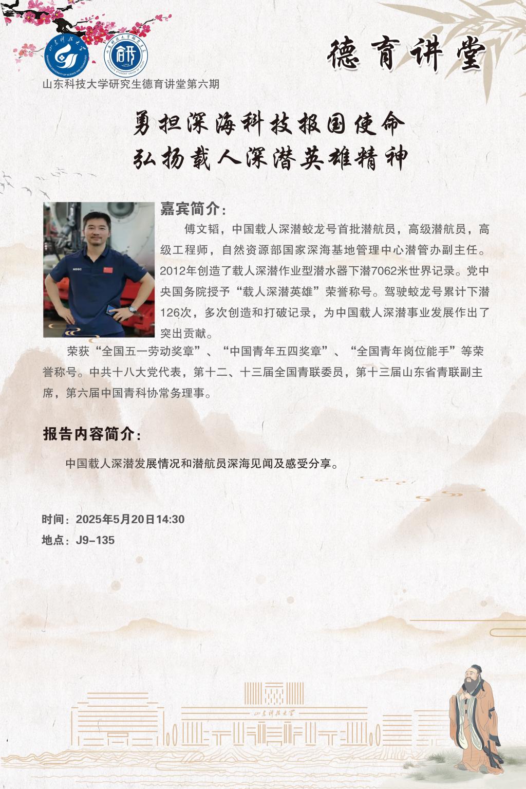 研究生“德育讲堂”:勇担深海科技报国使命 弘扬载人深潜英雄精神(总第6期)